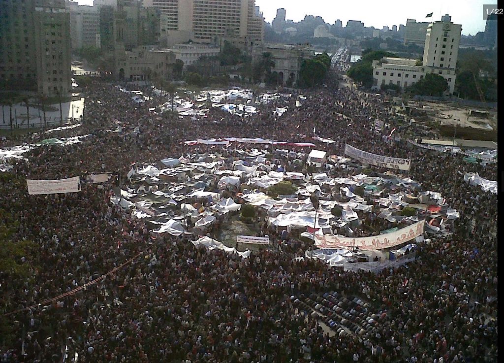 Tahrir Square in Cairo on the 11th day of this trecena in 2011 (Feb. 8th), at the time of the Egyptian Revolution. Photo by Mona, CC-BY-SA 2.0 via Wikimedia Commons