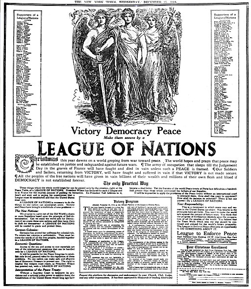 Promotion published in the New York Times, which notes that the League “should ensure peace by eliminating causes of dissension, by deciding controversies by peaceable means, and by uniting the potential force of all the members as a standing menace against any nation that seeks to upset the peace of the world”. One Lamat marks the 106th anniversary of the founding of the League of Nations in 1910.